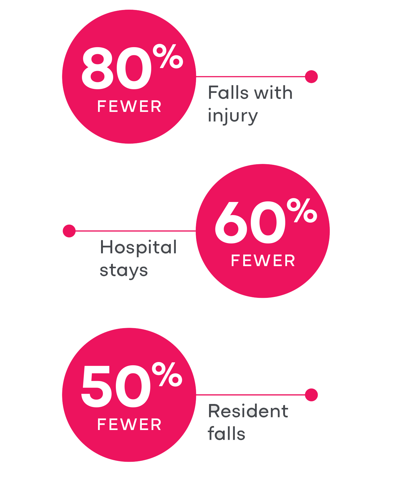 AUGi has been used by multiple communities across various care settings with impactful results in improving resident safety and improving staff's response times and workloads.